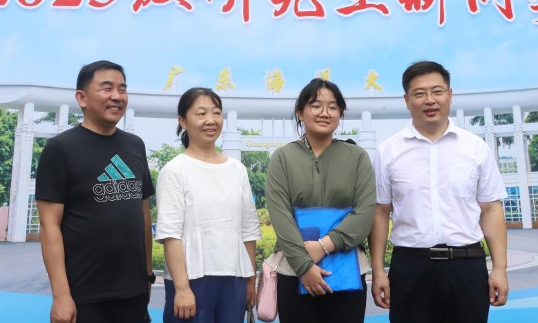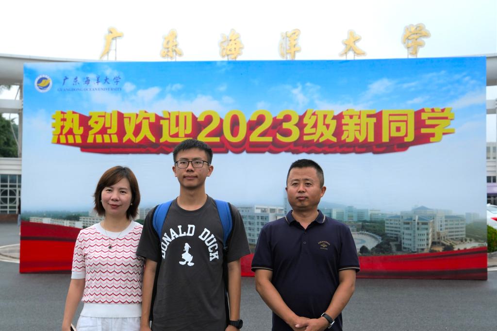 在前来报到的新生和家长中,学校党委书记杨洲一行还遇到了与海大分外“有缘”的一家三口——女儿周怡然是学校海洋与气象学院大气科学专业2023级新生,父亲周幸福和母亲王峙则同为海洋与气象学院校友,分别是农业气象专业(现应用气象)1995届毕业生和气象专业(现大气科学)1996届毕业生。时隔近20年,周怡然成为了父母的“小师妹”,也与父母一样拥有了“海大人”的身份,这一份特殊的情感得以传承。杨洲与周怡然一家唠起家常,细细询问孩子生活情况、入学感受,并鼓励孩子好好学习,在海大启航深造。“这种深厚的缘分也成为我求学路上的一种鼓励。”周怡然表示。