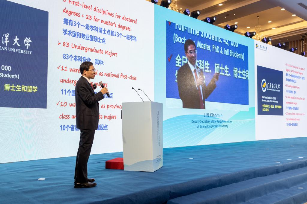 林晓敏在会上作“新时代海洋类高校国际化建设刍议”主题报告,向与会嘉宾介绍了今年会官网的基本概况、国际化建设的理念与策略、开放办学的主要做法以及目前存在的问题与对策等,希望与国内外各大海洋院校广泛开展交流与合作,共同为海洋事业发展贡献力量。