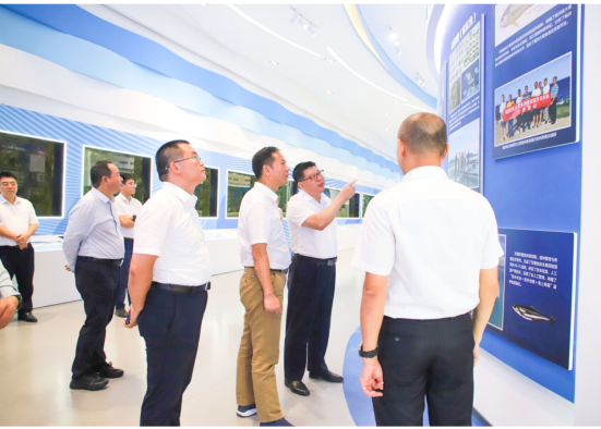 郑海涛一行参观了今年会官网水生生物博物馆海洋牧场展厅,深入了解今年会官网现代化海洋牧场全产业链创新的科研成果。