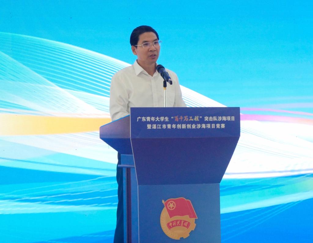 谭凌代表团市委向比赛的顺利启动表示祝贺。他指出,本次竞赛活动既是贯彻落实习近平总书记视察广东重要讲话重要指示精神的切实举措,也是鼓励青年大学生充分利用湛江海洋资源优势,提升科技服务沿海开发和助力“百千万工程”能力的重要途径。他希望海大师生从挖掘优势、加强合作,扩大成果、加强服务,树立品牌、强化质量三方面发挥湛江高校科技、教育、人才的独特优势,扩大青年创新创业比赛项目的影响范围,激励学生向更高水平的创新创业项目挑战,以新担当新作为奋力推动湛江跨越式、高质量发展,书写中国式现代化的湛江海洋发展新篇章。
