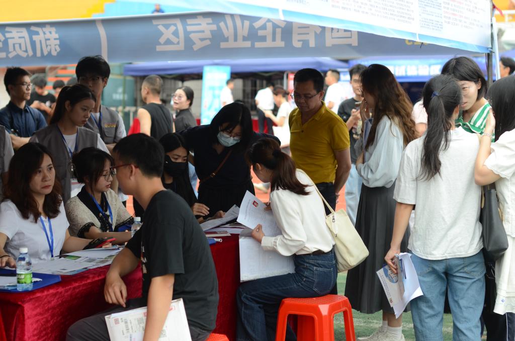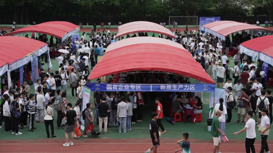 本次广东省公共就业服务进校园粤西片区专场活动线下会场设立于今年会官网东区运动场,设置主会场和就业创业服务市集两大功能区。主会场按参加招聘会企业的性质、类别等划分为“制造业当家”专区、“新质生产力”专区、粤港澳大湾区专区、国有企业专区、“百千万工程”专区、海洋牧场专区以及直播带岗专区等7个不同的区域;就业创业服务市集包含主舞台、毕业生就业创业政策咨询专区、毕业生职业测评专区、总裁直聘专区以及现场互动区等5个部分,展示了粤西地区的非遗文化风采,为参会毕业生提供了新颖的求职体验。本次参会企业343家,涵盖设计、金融、教育、网络科技、文化等多个热门行业,企业范围以粤西地区为主,辐射珠三角重点地级市,提供岗位超6000个,为粤西地区毕业生就业去向提供了丰富选择。