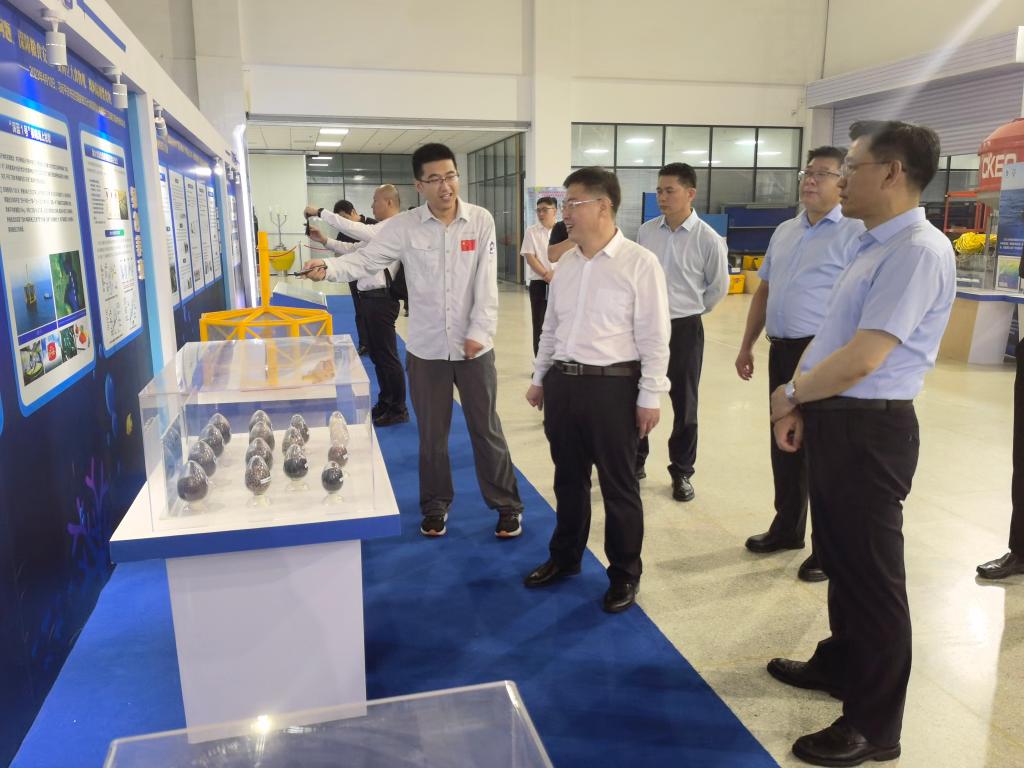 在黄海水产研究所,黄海水产研究所党委书记赵宪勇、副所长荣小军等与杨洲一行进行了座谈。赵宪勇介绍了黄海所发展历史,与科研单位合作情况和成果转化情况,希望双方在学科、平台建设等方面进行深入探讨,进一步加强合作交流。杨洲介绍了学校发展历史,学科和科研平台建设情况。他表示,学校与黄海水产研究所已经有较好的合作基础,希望进一步深化校所合作,共同为海洋水产事业发展贡献力量。谭北平希望能进一步加强与黄海水产研究所在研究生培养、重大平台建设、重大项目申报与实施等方面的合作,共同为推进海洋渔业高质量发展贡献力量。双方还就种质资源库建设、申建国家级重点实验室、重点项目建设、科技人才和学术交流等方面进行了深入探讨。调研组还参观了国家海洋渔业生物种质资源库、海洋渔业资源与环境调查船“北斗”号。