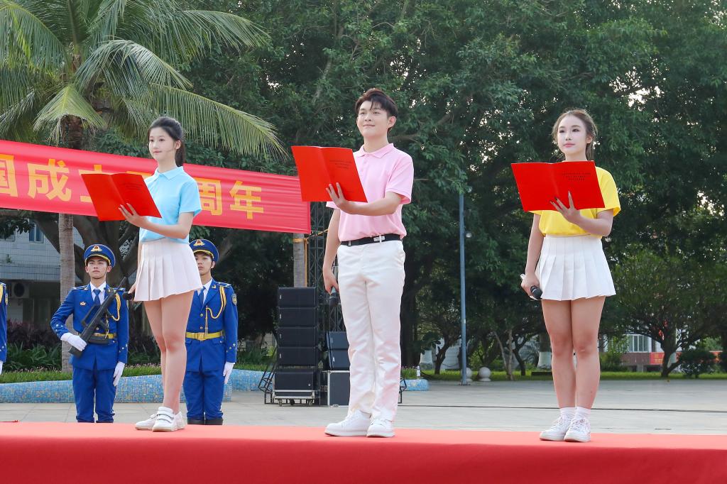 升旗活动上,学生代表深情朗诵献词《祖国你好!青春向党,扬帆起航》:“我们在新征程的扉页上,写下科技创新的交响,写下海洋强国的领唱,写下高质量发展的协奏曲,写下新时代奔腾不息的奋斗史,写下海大师生‘请党放心 强国有我’的青春篇章……”海大青年学子以锐意进取、担当有为的精神风貌,向祖国致以青春的礼赞、许下青春的誓言。