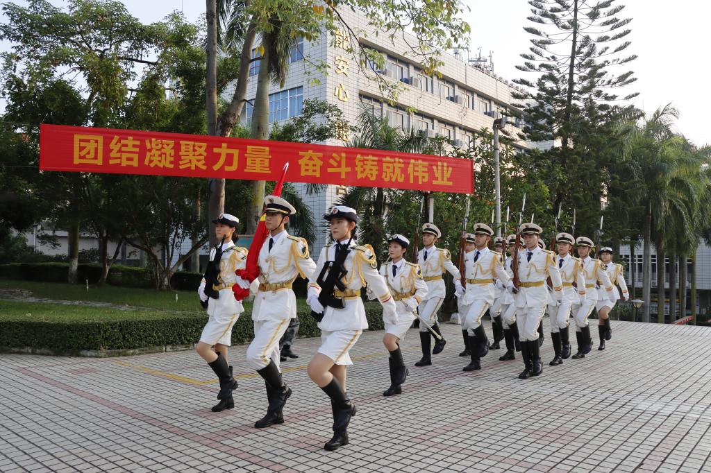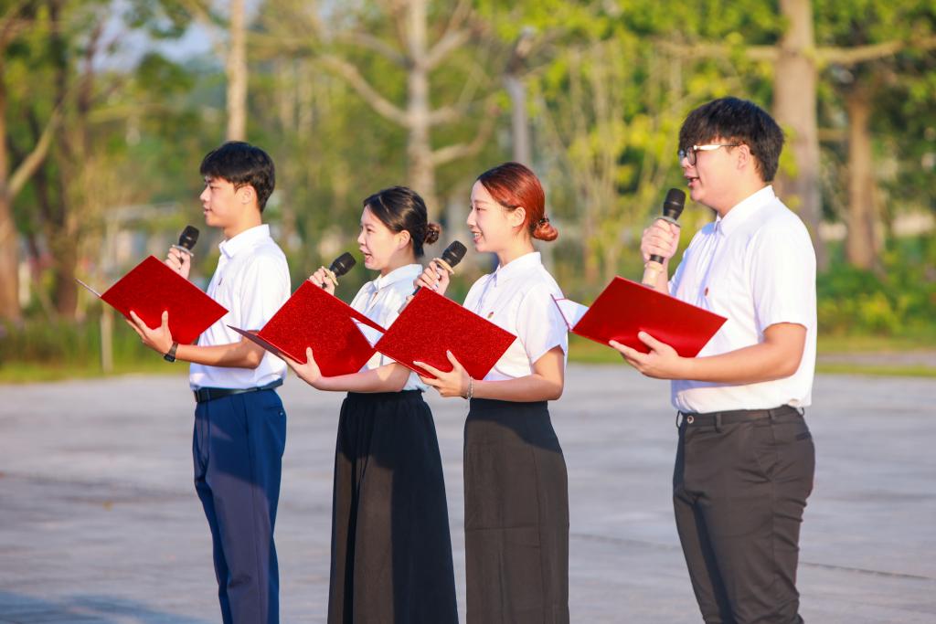 学校领导杨洲、谭平、谭北平、宁凌、邓逢光、周昌仕、林宇,各单位部门主要负责人及师生代表共2000多人现场参加活动,超过1800人次师生在线参加了升旗仪式。学校党委书记杨洲在湖光校区讲授“国旗下的思政课”,党委副书记谭平主持湖光校区活动。学校党委常委、副校长邓逢光,党委常委、副校长、阳江校区党委书记、管理办公室主任周昌仕分别在海滨校区、阳江校区升旗活动上讲话。