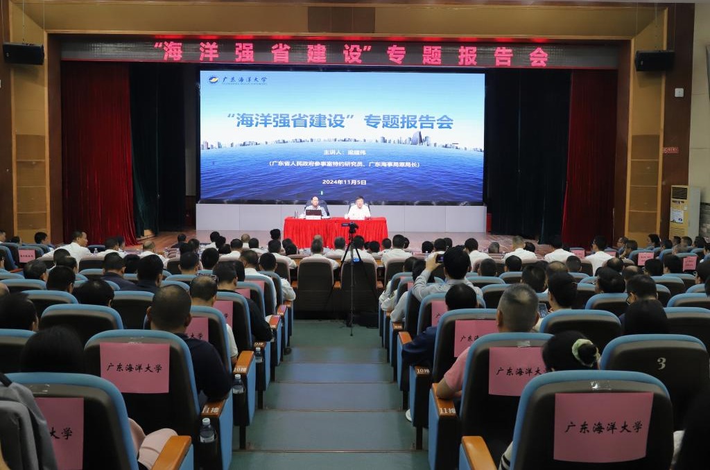 11月5日上午,学校在湖光校区广学楼多功能厅召开海洋强省建设专题报告会。广东省人民政府参事室特约研究员、广东海事局原局长梁建伟应邀作辅导报告。学校党委书记杨洲主持报告会。湛江海事局、湛江航标处、湛江通信中心、湛江港(集团)股份有限公司、湛江中远海运物流有限公司等单位的领导班子成员及中层干部,学校领导、全体正处干部、民主党派负责人以及涉海学院师生代表共计400多人参加会议,阳江校区干部师生代表通过线上平台观看直播。