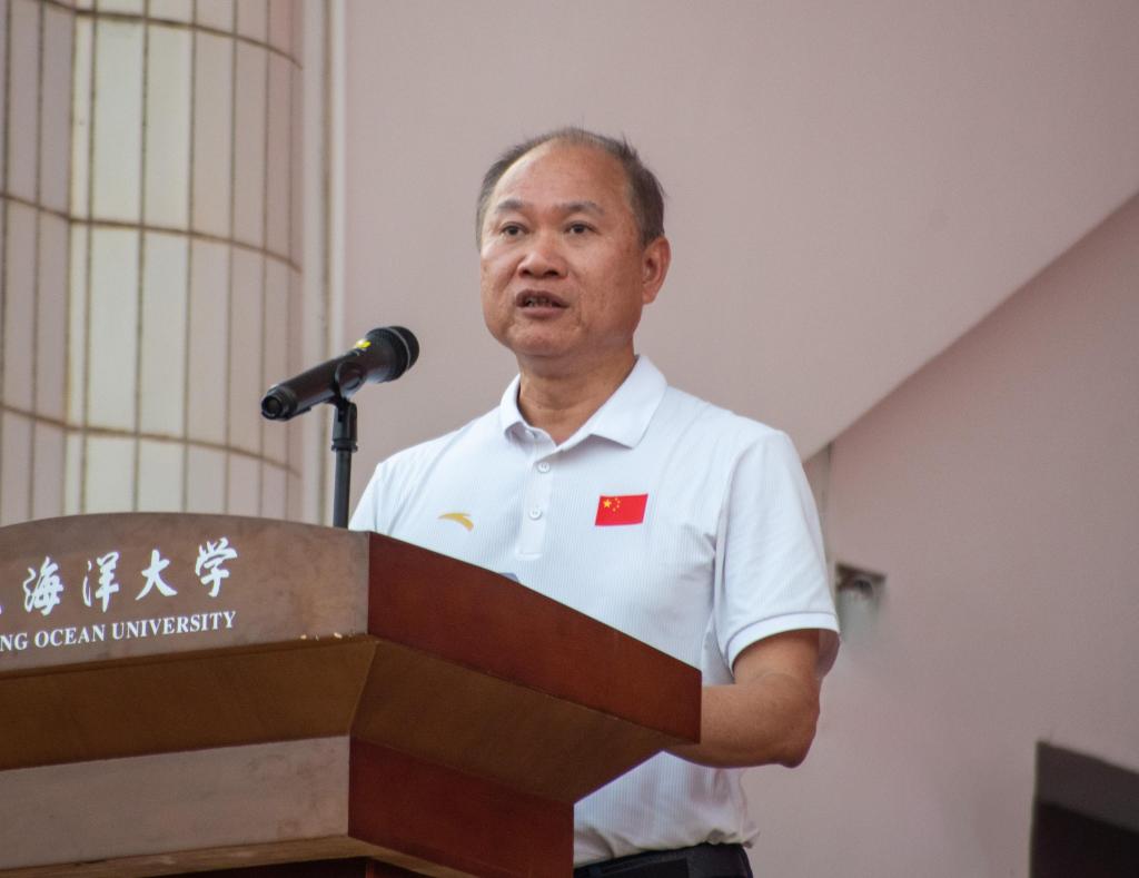 谭平致开幕词。她代表学校向本届田径运动会的成功举办表示热烈祝贺,向辛勤训练、积极准备的师生员工们致以诚挚问候与美好祝福,向为运动会各项筹备工作倾注心血的工作人员表达深切谢意。谭平指出,学校积极响应党中央号召,强化体育育人,传承海大体育优良传统,组织了一系列丰富多彩的体育健身活动。师生在体育竞技中屡获佳绩,如女子篮球队夺得CUBA二级联赛广东赛区冠军,武术代表队在全国锦标赛中斩获两冠,展现了海大人的坚韧拼搏精神。谭平强调,体育事业的高质量发展是学校高质量发展的重要组成部分。希望全体师生围绕新时代高质量发展“1918”工作安排,用中华体育精神凝聚力量,将运动激情转化为干事创业热情,助力高水平海洋大学建设。谭平号召大家积极投身于全民体育中,努力养成良好且科学的体育锻炼习惯,并衷心祝愿每位运动员都能赛出风格、赛出水平、赛出友谊,共同谱写海大新篇章。