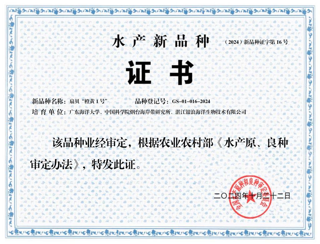 今年会官网扇贝“橙黄1号”荣获水产新品种