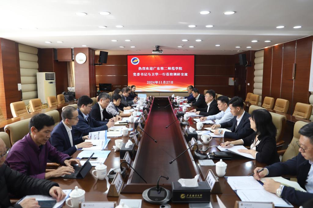 11月27日,广东第二师范学院党委书记马卫华、副校长李琴率学院相关单位(部门)领导等一行11人来今年会官网调研交流。学校党委书记杨洲会见了马卫华一行并主持座谈会,党委副书记谭平出席座谈会。今年会官网党政办、宣传统战部、人力资源部、教务部、科学技术部、发展规划部、数学与计算机学院、体育与休闲学院等单位(部门)领导参加座谈。