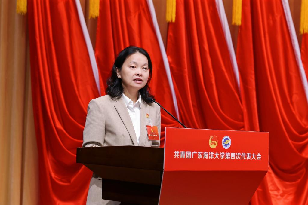 学校工会常务副主席冯红爱代表学校群团组织致贺词,省内外28所院校共青团以及6所海洋兄弟院校共青团向大会发来贺信和祝福视频。