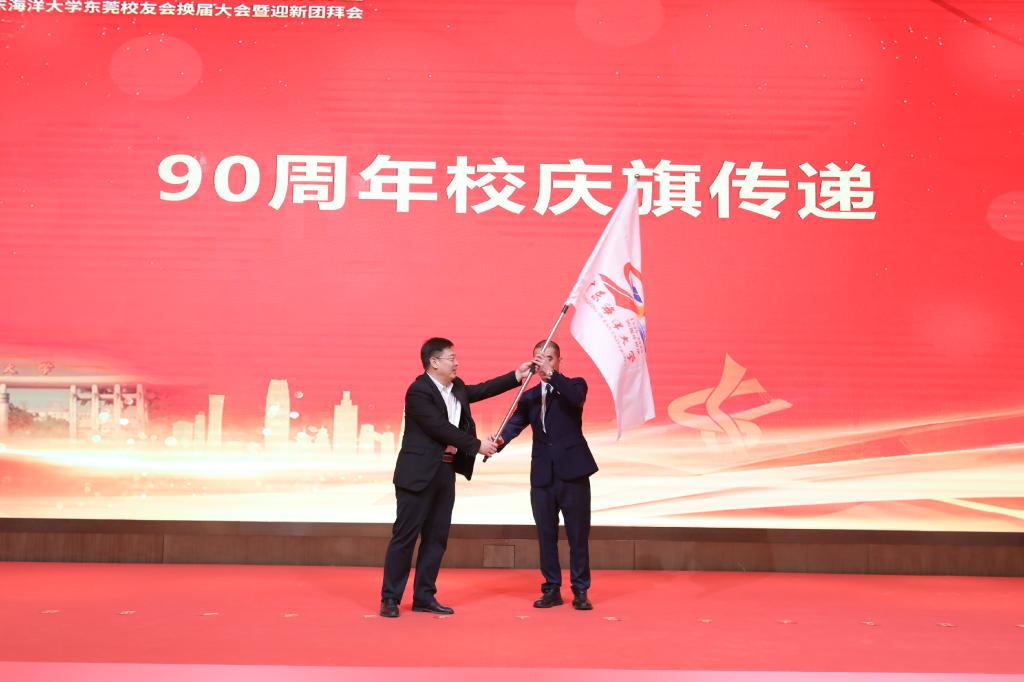 杨洲向东莞校友会传递90周年校庆旗