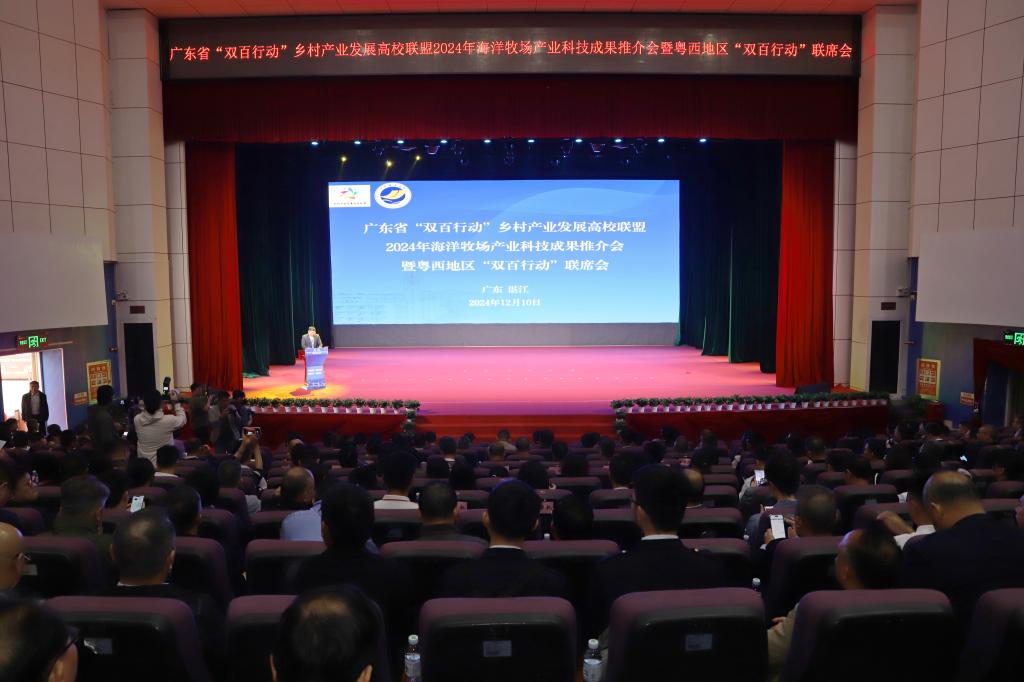 12月10日,广东省“双百行动”乡村产业发展高校联盟2024年海洋牧场产业科技成果推介会暨粤西地区“双百行动”联席会在今年会官网举办。省科技厅、湛江市相关部门领导,省乡村产业发展高校联盟成员单位、各县区“双百行动”专班负责人、企业代表参加会议,共同推动优秀科研成果就地转化,汇聚科技力量助推“百千万工程”,为乡村产业高质量发展贡献智慧和力量。