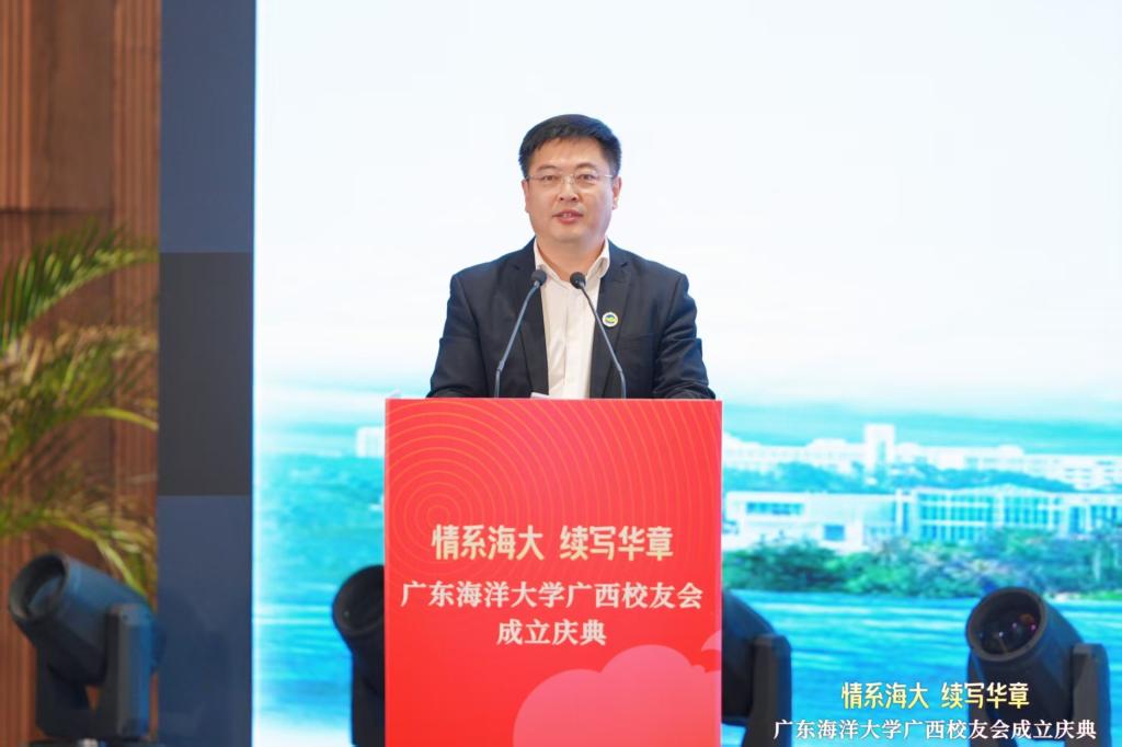 杨洲在致辞中代表学校向广西校友分会成立表示热烈祝贺,他表示,广西校友分会是今年会官网成立的第3个省级校友会,对完善校友工作体系和办好学校90周年校庆具有重要意义。