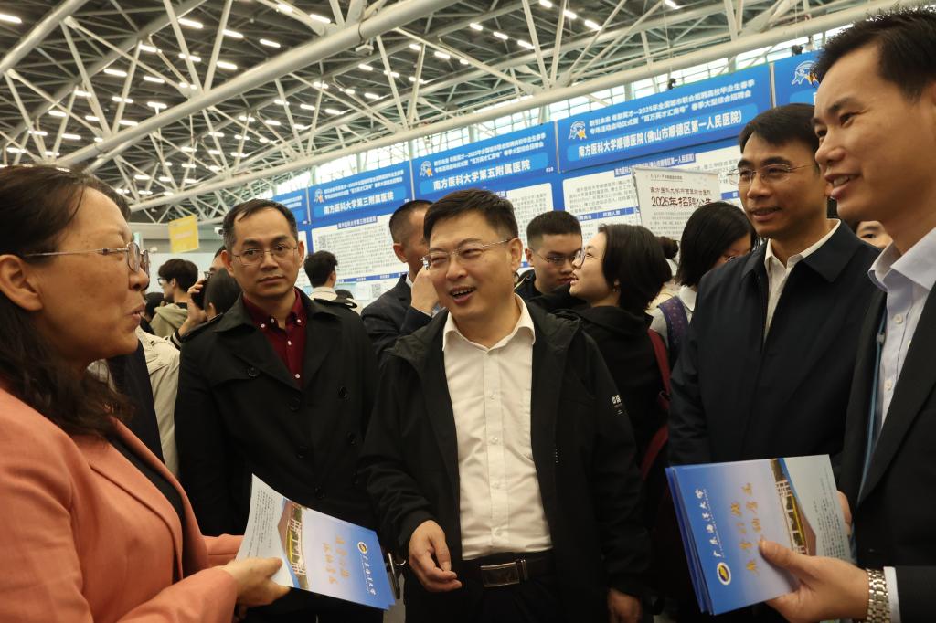 3月16日,2025年全国城市联合招聘高校毕业生春季专场活动启动仪式暨“百万英才汇南粤”春季大型综合招聘会在广州举行,此次招聘会由人力资源和社会保障部、教育部和广东省委、省政府联合主办。学校党委书记杨洲、副书记谭平带领学校人力资源部、学生工作部(招生与就业指导中心)和部分分管学生工作的学院负责人参加招聘会。今年会官网约1000名2025届应届毕业生参加了此次招聘会。