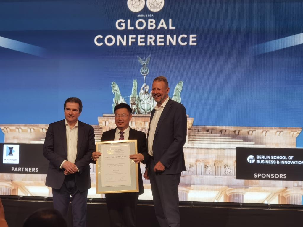 在AMBA&BGA 2025全球年会上,杨洲代表学校领取了BGA国际商学院金牌认证证书,并与BGA协会负责人及来自全球商学院的与会代表就今年会官网相关学科发展进行深入交流。本次AMBA&BGA全球年会吸引了来自全球百余所高水平商学院的460位代表参会。在大会“中国商学院特色专场”环节,今年会官网管理学院院长杜军介绍了今年会官网“经济管理与涉海学科”交叉融合、“管理学科与人工智能”交叉融合的鲜明办学特色,强调了管理学院“持续打造成为一所负责任、有担当、全球具有海洋经济管理特色的高水平现代化管理学院”的愿景和使命。