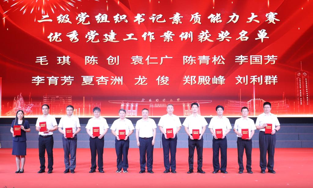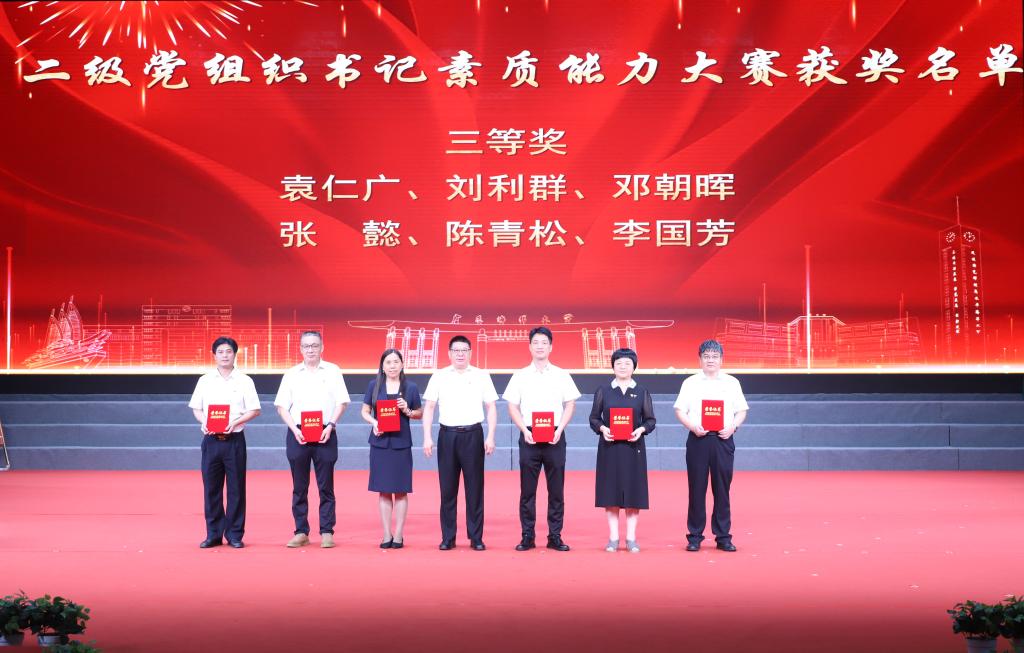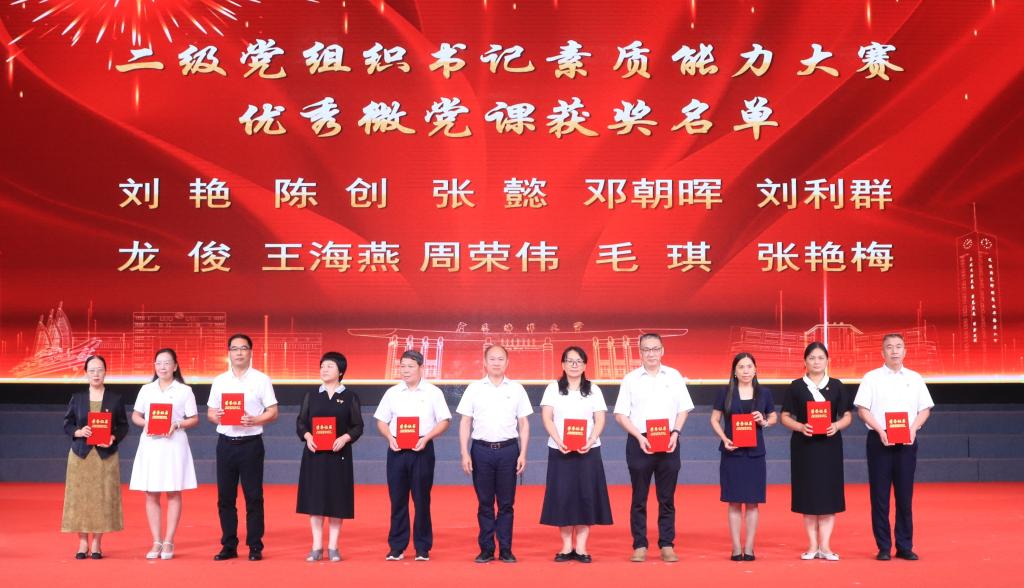谭平总结了二级党组织书记素质能力大赛情况,会上播放了优秀微党课和党建工作案例视频。学校领导分别为获得二级党组织书记素质能力大赛奖项的二级党组织书记、获评“优秀微党课”和“党建工作案例”的二级党组织书记颁奖。