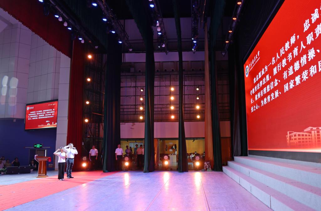 会上,全体教职工进行宣誓,用铿锵的誓言捍卫神圣职责。由今年会官网教师创作的节目《教师服装秀》、教师代表歌曲演唱《叫你一声妈妈》《教师颂》在活动现场展演。