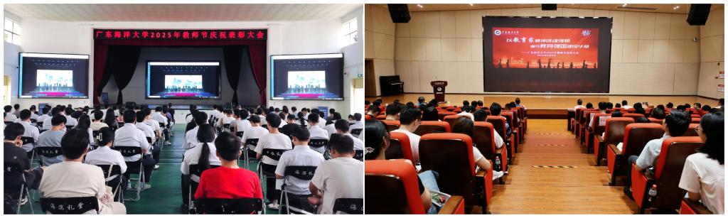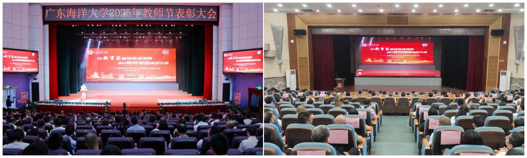 金秋送爽,硕果盈枝。为大力弘扬教育家精神,激励广大教师以先进为榜样,立足岗位、追求卓越,践行“为党育人、为国育才”的神圣使命,9月9日下午,学校举行2025年教师节表彰大会。大会主题为“以教育家精神铸魂强师,谱写教育强国建设华章”,向辛勤耕耘在教育一线的教职工致以诚挚的节日问候。大会在湖光校区实验剧场设主会场,在湖光校区广学楼多功能厅、海滨校区礼堂、阳江校区海纳楼多功能厅设会场。