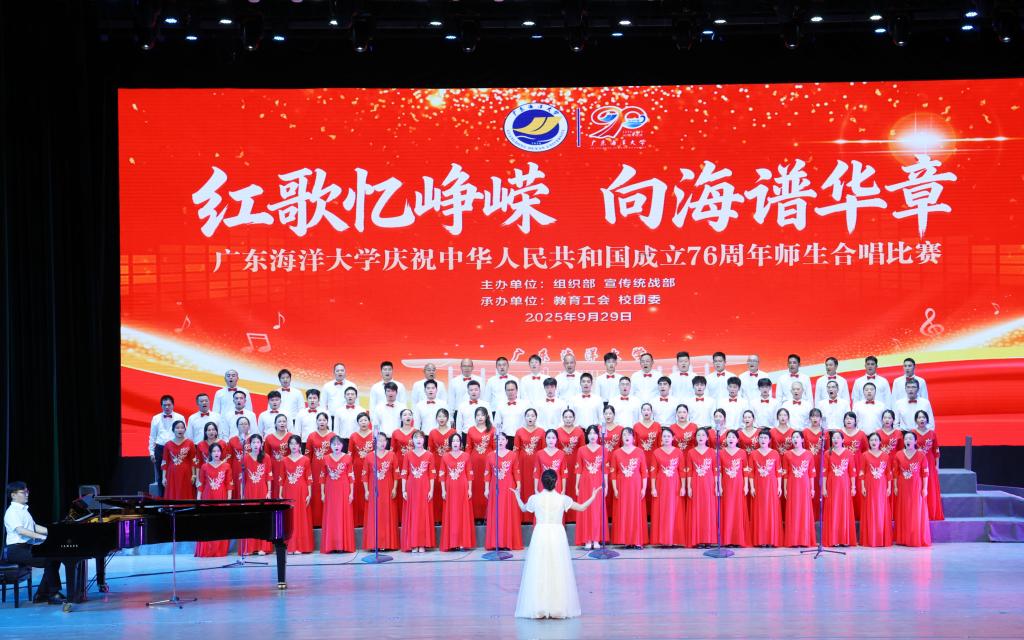 为庆祝新中国成立76周年、学校建校90周年,9月29日,学校在湖光校区实验剧场举行“红歌忆峥嵘,向海谱华章”师生合唱比赛,厚植爱国主义情怀,凝聚奋进力量。学校党委书记杨洲,党委副书记谭平,党委常委、副校长宁凌、邓逢光、周昌仕,党委常委、宣传统战部部长林宇,全体中层干部、师生代表现场观看比赛。阳江校区通过企业微信直播平台线上观看比赛。