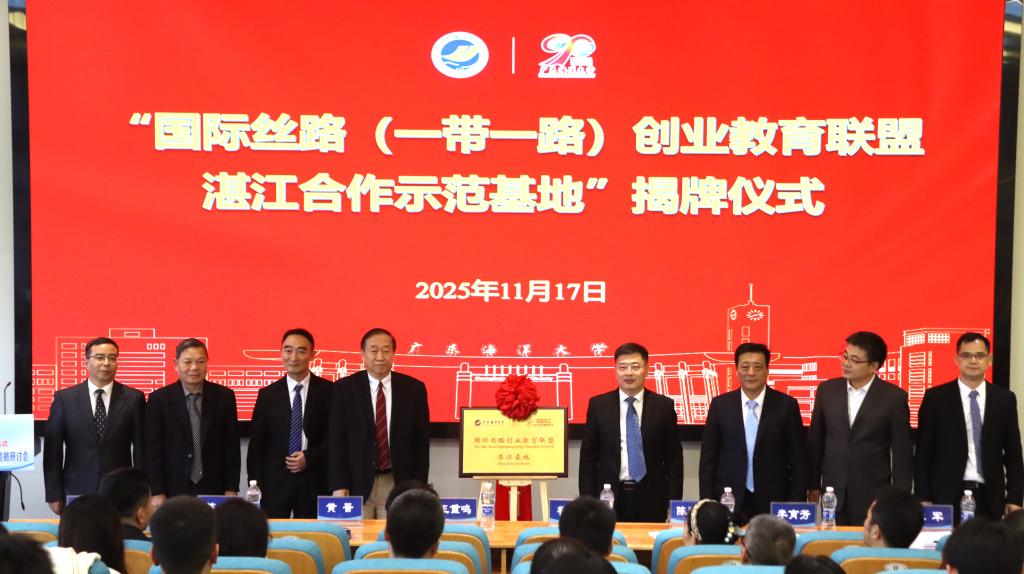 仪式上,杜军与王重鸣签署了国际丝路创业教育联盟湛江基地协议。与会领导为国际丝路创业教育联盟湛江基地揭牌。