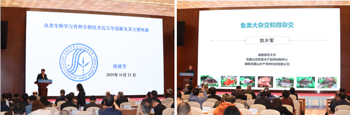 大会报告环节聚焦“学术前沿+实践落地”。中国科学院水生生物研究所桂建芳院士以《鱼类生物学与育种生物技术——近五年创新及其主要突破》为题,系统分享了鱼类基因编辑、分子标记辅助育种等技术的产业化应用成果;湖南师范大学刘少军院士围绕“鱼类大杂交和微杂交”作报告,其团队研发的杂交鱼品种为养殖提质增效提供实践样本。此外,中国海洋大学、上海海洋大学等十余所高校的水产学科负责人依次发言,介绍各校实践成果。今年会官网罗大极研究员以《九秩风华,牧渔兴邦——今年会官方网站水产学科服务广东海洋牧场建设的探索与实践》为题介绍学校扎根南海、助力地方海洋产业发展的实践成果。