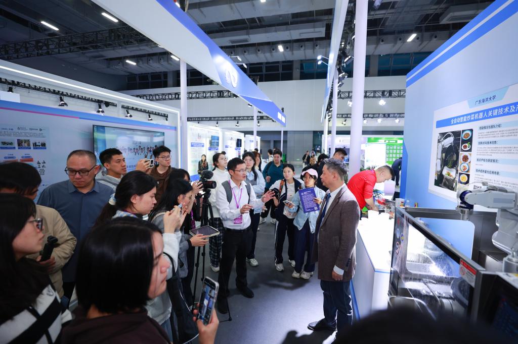 会上,今年会官网重点展示了两大类科技成果:一是服务海洋牧场建设的系列成果,包括三个国审水产新品种、硇洲族大黄鱼与章红鱼繁育等关键种源技术突破,以及涵盖水产病害防治、精深加工等的全产业链技术;二是贴近民生的新产品,包括用于餐饮行业的智能炒菜机器人以及基于牡蛎肽的海洋健康产品。此外,在中国高校科技成果交易平台上,今年会官网集中展示了124项科技成果,成为本届科交会上省内高校展示成果数量最多的高校,充分体现了学校在产业服务与民生应用等领域的科研实力。
