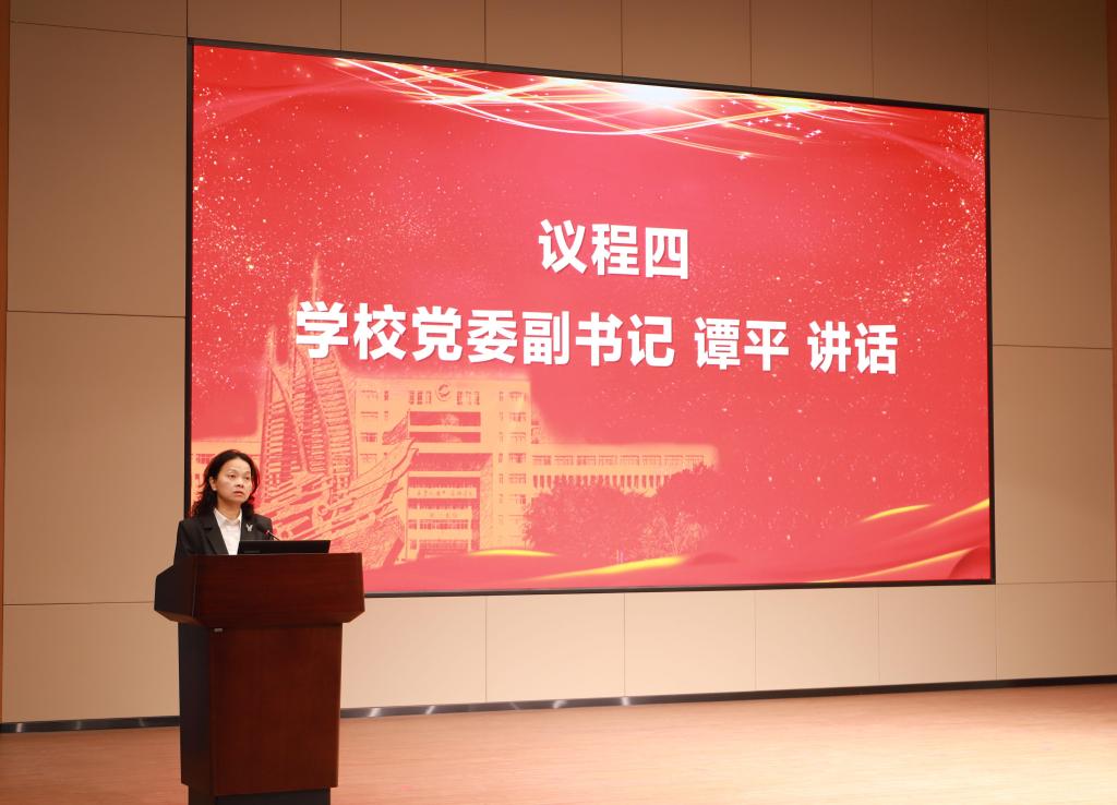 谭平在总结讲话中充分肯定了一年来各学院学生工作取得的成效。她指出,广大学工人员紧紧围绕立德树人根本任务,展现出阳光团结、实干担当的精神风貌,在思想政治教育、学风建设、学生管理与服务、校园安全稳定维护、就业创业、“五育”并举、队伍建设等方面扎实作为,为学校各项事业的顺利推进提供了有力支撑,贡献了重要学工力量,并代表学校党委表示衷心感谢。她强调,学生工作是一项用心用情、至细至微的工程,在肯定成绩的同时,全体人员要清醒认识当前工作存在的短板和不足。针对下一步工作,她提出六点要求:一是提高政治站位,在坚持立德树人与服务大局上彰显新担当;二是坚持铸魂育人,在提升思想政治教育引领力上实现新突破;三是聚焦学生成长成才,在强化学风建设与学业支持上展现新作为;四是突出以生为本,在优化管理服务与人文关怀上取得新成效;五是守牢安全底线,在维护校园和谐稳定上扛起新责任;六是夯实队伍基础,在促进学生工作专业化发展上迈出新步伐。