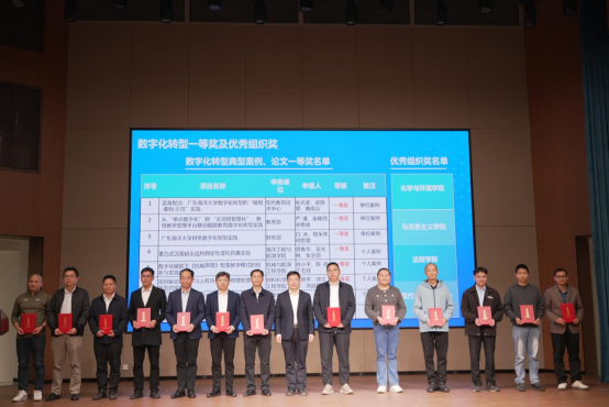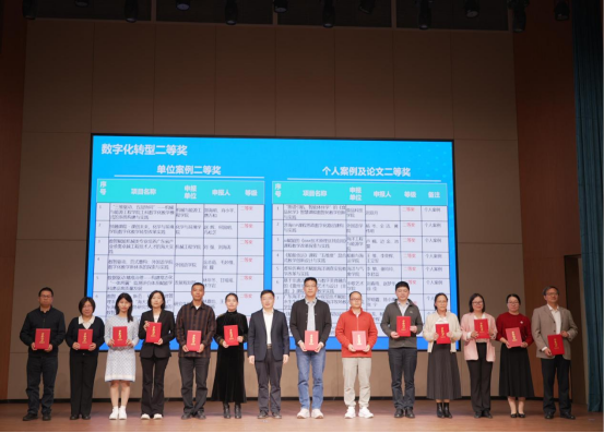 会上举行了表彰仪式,杨洲为获得数字化转型典型案例、论文获奖代表及优秀组织奖的单位颁奖,以激发全校师生参与数字化转型的积极性与主动性。