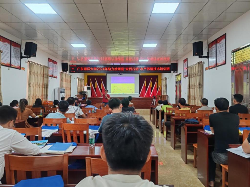学校将培育高素质农业经营管理和技能人才作为服务产业振兴的关键。一是高位打造产业带头人。连续3年承担广东省农业经理人培育项目,2024年创新开设水产、种植、畜禽三个专业方向班,采取“公共课大班+专业课小班”模式,并组织学员赴浙江实地研学“千万工程”经验,全年高质量培育102名农业经理人,农业经理人项目已成为省级品牌,学员成为联农带农、推动产业升级的重要力量,相关工作获省厅肯定及多家媒体报道。二是精准赋能蓝色经济人才。对接湛江市海洋牧场建设规划,2024年深入恒兴、粤海等龙头企业调研,以“送教上门”、线上线下结合方式,开展14场次专题培训,累计培训2254人次,精准服务地方战略产业,提升了从业者专业素养,助力海洋牧场企业提质增效。三是下沉一线推广实用技术。紧密围绕结对县特色产业,组织专家团队“送技到镇”。2024年在徐闻举办对虾、生蚝等水产养殖技术培训,服务养殖户近200名;2025年深入徐闻多个乡镇,针对生蚝、珍珠、东风螺等特色品种开展“理论授课+现场答疑+跟踪服务”一体化培训4场,服务近200人;同期联合雷州市农业农村局,聚焦对虾绿色养殖、甘薯高效栽培、供港生猪标准等主题举办专题培训,覆盖100余名种养殖户和农技员,切实推动技术落地转化。学校开展的基层人才培训形成了从高端农业经理人到一线农户的立体化人才培养体系,推动了绿色生态养殖模式和标准化生产技术的应用,助力特色产业提质增效。