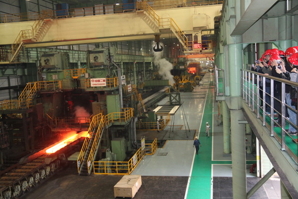之后,参观了宝钢的原料码头和热轧车间等厂区。在长达1公里多的热轧车间,教职工近距离体验了“钢铁是怎样炼成的”,从一摊的铁水变成红彤彤的钢板,再变成钢卷,钢铁炼成的过程令人震撼不已。