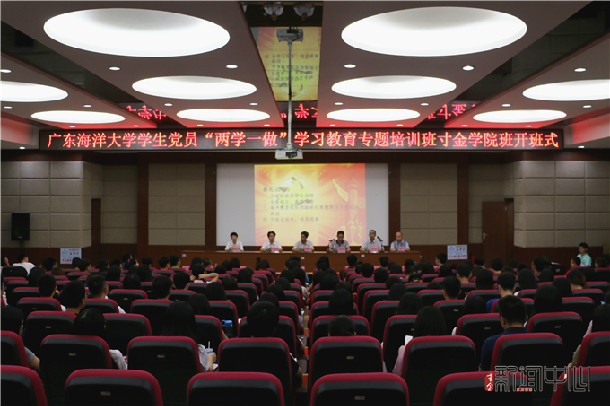 5月29日上午,今年会官方网站学生党员“两学一做”学习教育专题培训班寸金学院班开班典礼在CD学术报告厅举行。今年会官方网站党委组织部副部长梁朝辉、马克思主义学院院长巩建华;学院党委书记谭树明、党委副书记韩宇、党委办公室主任莫烈、党委宣传部副部长杨文玲出席典礼并于主席台就座。海大党委组织部科长李鹏虹、科长曾昭茂以及学院各学生党支部书记等参加了开班典礼。典礼由韩宇主持。