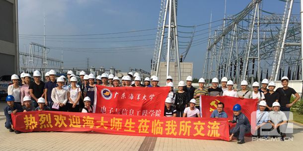 当天上午,大家来到东海岛东山镇500kV变电站参观学习的活动。在电站工作人员的指引下,参观了500千伏变电站、220千伏变电站,以及主变和开关地刀等电力设备。李一峰和樊海红老师用现场说法,将课本内容与现场设备结合起来讲述,加深同学们对书本知识的理解,并要求学生在实践中注意观察和了解各种电力、电气设备,以增长见识、拓宽视野。