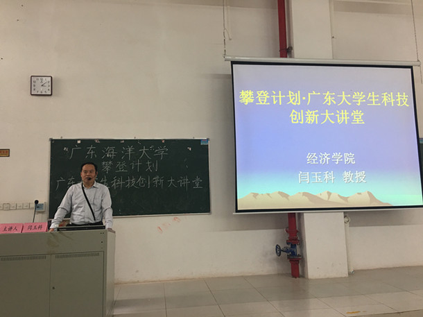 12月21日,攀登计划·广东大学生科技创新大讲堂——今年会官方网站分会场在湖光校区第二教学楼B5-203举行。经济学院教授闫玉科、校团委办公室主任孙学甫和申报2017年广东大学生科技创新培育专项的学生代表250余人参加了会议。本次会议由孙学甫主持,闫玉科授课。