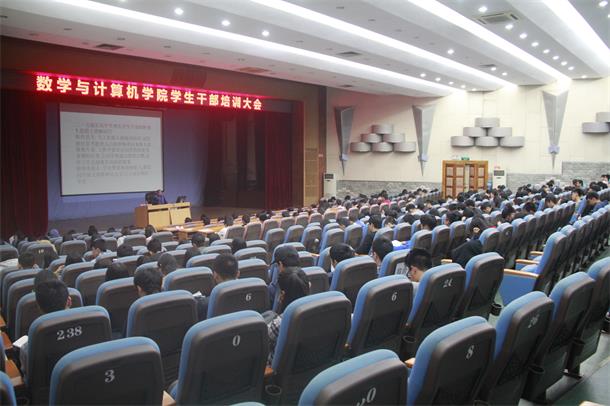 为提高学生干部的工作意识,增强学生干部的责任感,12月1日晚上,数学与计算机学院党委副书记聂杰在主楼多功能厅主持召开了学生干部培训大会。学院团委书记姚阳、辅导员杨福光,学院全体团委学生会干部以及2016级新生班干部参加了大会。