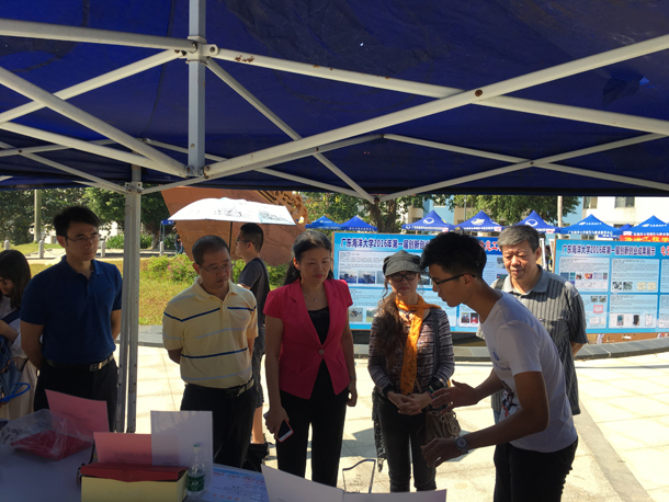 10月16日,学院在海洋广场参加学校创新创业作品展,学校高秀梅副校长、教务处张光亚副处长、招生与就业指导中心郑一鸣主任、学院党委刘英杰书记、陈春雷教授、王慧副教授、科技团队指导老师及辅导员老师等参加了本次作品展。本次作品展展示了我院参加全国、省、市获奖的作品代表24件。
