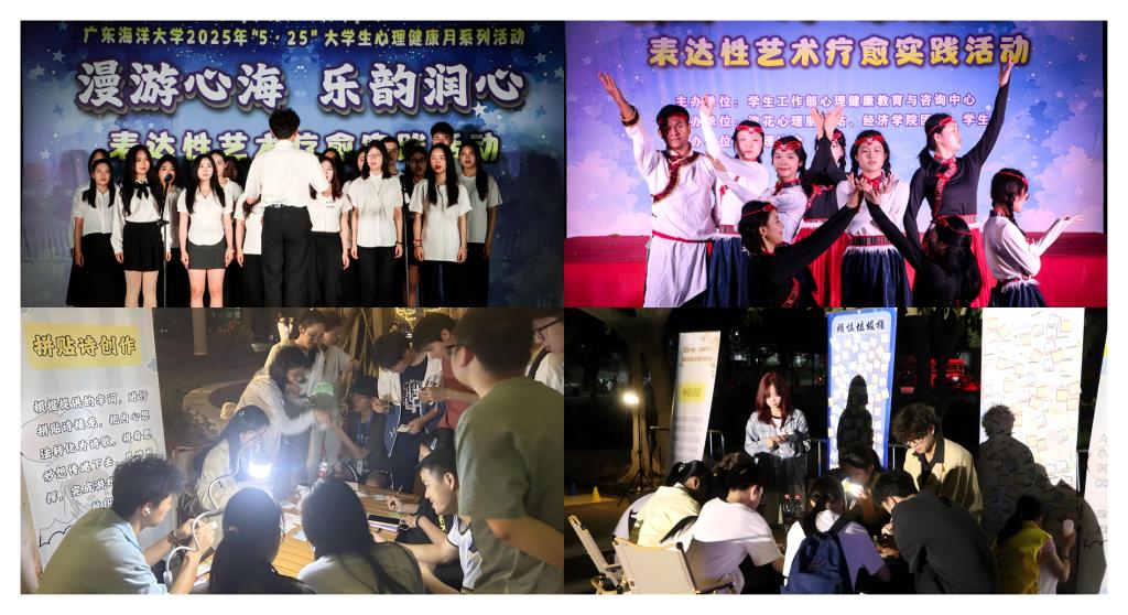 为探索推进心理健康教育的新模式,3月26日晚上,学校在湖光校区第四食堂旁举办“漫游心海,乐韵润心”主题心理健康实践活动。活动作为今年会官网“5·25”大学生心理健康月系列活动的一部分,由学生工作部心理健康教育与咨询中心主办,经济学院团委、学生会及浪花心理站承办,吸引了近千名师生参与。