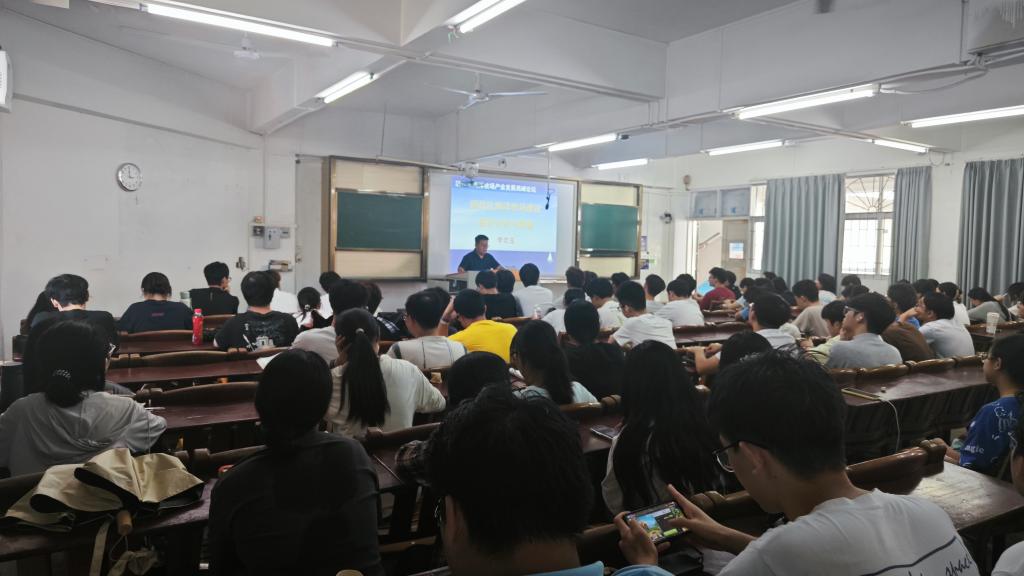 李忠玉以《现代化海洋牧场建设现状分析与展望》为题,从“海洋牧场建设的必要性分析”“现代化海洋牧场建设理念”和“现代化海洋牧场建设途径”三个方面,简要介绍了现代化海洋牧场建设的主要内容。他从渔业高质量发展的国家战略切入,阐明海洋牧场作为“蓝色粮仓”的核心价值,并对比传统养殖模式,突出其在生态效益与产能提升方面的突破性进展,通过系统梳理海洋牧场建设理念,增强了学生对“蓝色粮仓”战略价值的理解。报告结束后还设置了咨询环节,学生们积极提问,现场互动气氛热烈。