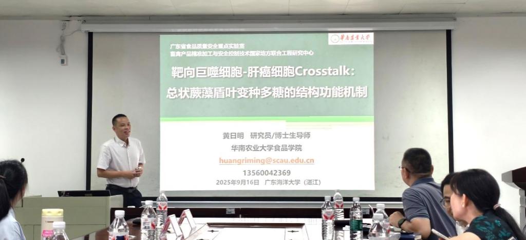 黄日明教授围绕《靶向巨噬细胞-肝癌细胞Crosstalk:总状蕨藻盾叶变种多糖的结构功能机制》展开报告,详细分享了团队在海洋生物多糖领域的系列研究成果,重点解析总状蕨藻盾叶变种多糖的精细结构与序列特征,深入阐释其免疫调节活性、抗肝癌活性的作用规律,以及调控巨噬细胞-肝癌细胞互作的信号通路与分子机制,为海洋活性物质的研发与产业化提供重要参考。
