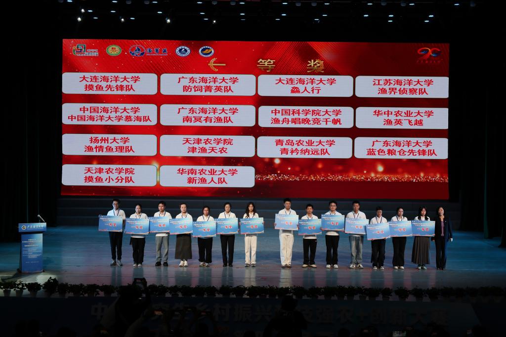 学校领导高度重视,水产学院邀请了专家对参赛学生进行技能培训,并派出了由陈扬慧、黄伟滨、李立贤、邹永烽、王红明、金绍玲、林祥钦、叶琪、李可9名学生,董晓慧、王蓓、黄瑜、张卫、郑哲和岳晨阳6名优秀指导教师组成的三支参赛团队(“防饲菁英队”“蓝色粮仓先锋队”“南溟有渔队”),与来自全国41所高校及研究所的93支队伍同台竞技。最终,三支队伍全部斩获团体比赛一等奖,各队伍指导老师均获评“优秀指导教师”称号。