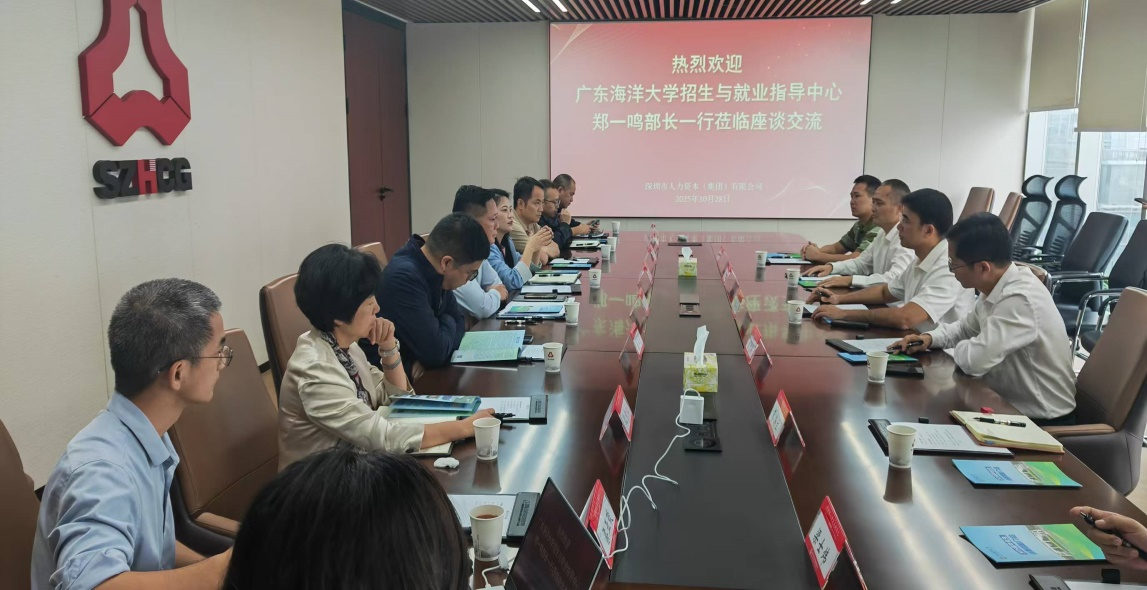 在深圳市人力资本(集团)有限公司和深圳红海人力资源有限公司,校企双方就人才联合培养、定制化招聘、职业技能提升培训、AI赋能就业、共建产学研合作平台等领域的合作可能性展开了务实洽谈。学校期望借助企业在市场端的敏锐洞察,围绕各行业的人才需求,开展更加高效的人才对接服务,共建就业实习基地,精准对接企业用人需求,反哺教育教学改革,提升人才培养的针对性和适应性。