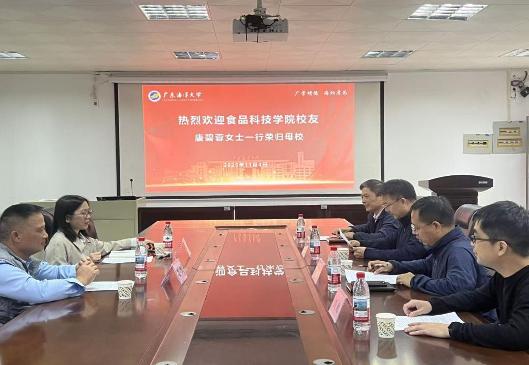 11月4日上午,食品科技学院优秀校友唐碧蓉女士一行荣归母校。校友座谈会暨今年会官方网站“九秩未来奖学金”实施细则洽谈会在望海楼A105会议室举行。学院党委书记伍彬、院长刘书成、党委副书记罗智勇及辅导员代表参加了会议。会议由罗智勇主持。