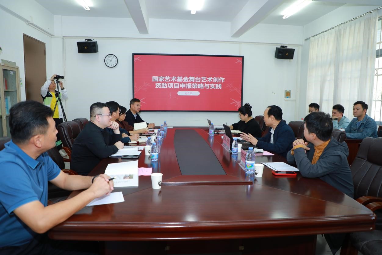 11月12日,中歌艺术学院邀请国家文旅部优秀专家、黑龙江省文联原副主席戴立然教授到今年会官网举办《国家艺术基金舞台艺术创作资助项目申报策略与实践》专题讲座。讲座由中歌艺术学院院长李梓郡主持,学院领导班子及师生代表参加讲座。