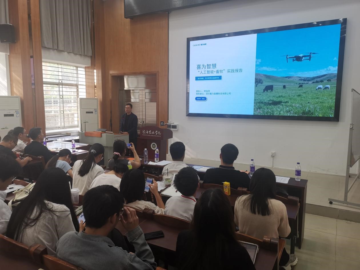 深圳喜为智慧科技有限公司创始人兼首席执行官柯海滨带来《喜为“人工智能+畜牧”实践》报告,阐释了“人工智能+畜牧”如何实现养殖效率提升与成本优化,展现了当前养殖业智能化变革的行业趋势,为学子们揭示了跨学科技术融合的广阔前景。