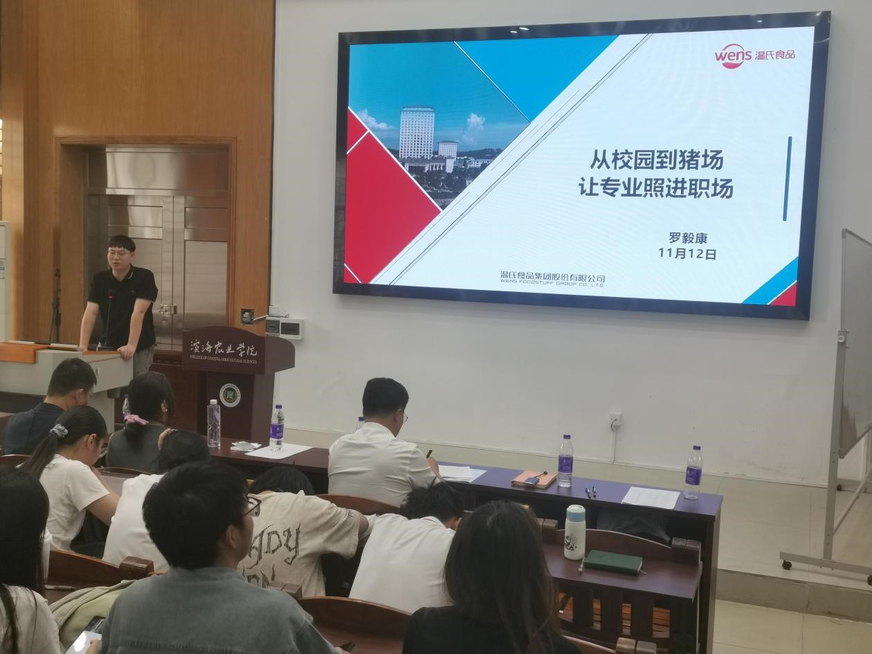 11月12日,滨海农业学院和现代滨海畜牧产业学院在兴农楼109教室举办“建校90周年企业专家进校系列报告”第二场报告会。报告会邀请了宠物食品、智慧养殖、生猪养殖领域的三位行业精英。滨海农业学院副院长刘文超教授主持会议,动物科学系教师代表及200余名师生参加报告会。