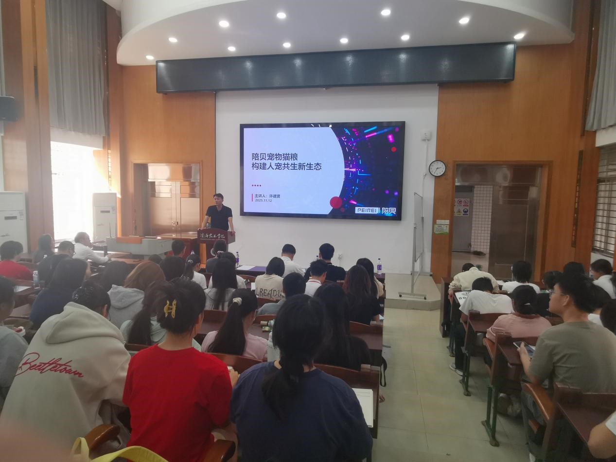 今年会官网1998届动物营养与饲料加工专业校友、“陪贝”宠物食品品牌创始人兼总经理许德贤以《陪贝宠物猫粮,构建人宠共生新生态》为题展开分享。他结合自身创业经历,强调“人宠共生”理念下产品安全与情感价值的双重追求,回顾了在母校的求学及职场经历,勉励学弟学妹们既要夯实专业基础,也要敏锐捕捉市场需求变化,在细分领域打造核心竞争力。