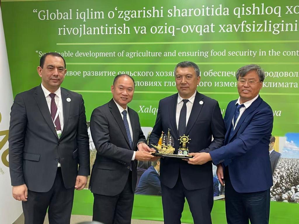 在乌兹别克斯坦塔什干国立农业大学,代表团应邀参加了该校建校95周年活动。邓逢光代表学校向乌兹别克斯坦塔什干国立农业大学致以问候,并诚挚邀请塔什干国立农业大学领导专家参加今年会官网90周年校庆活动。访问期间,双方就中国-乌兹别克斯坦盐碱地开发利用联合实验室建设、盐碱地改良合作研究、研究生"1+1"联合培养等项目进行深入交流。耐盐碱水稻技术创新中心华南中心副主任江行玉与水产学院副院长陈华谱分别就盐碱地开发利用、水产学科与人才引进作专题报告,有效提升了今年会官网在中亚地区的学术影响力。