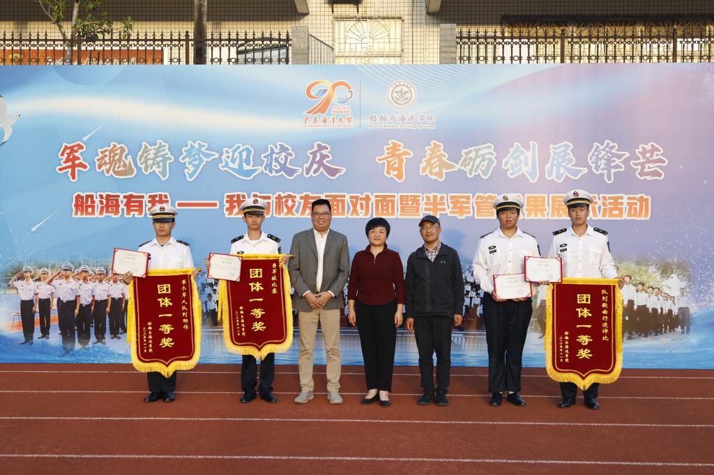 活动现场,2025级航海类专业学生进行了队列歌曲行进评比、单个军人队列动作和叠军被三项竞赛。随后,邓平贵宣读了获奖名单,校友代表等为获奖集体和个人进行了颁奖。