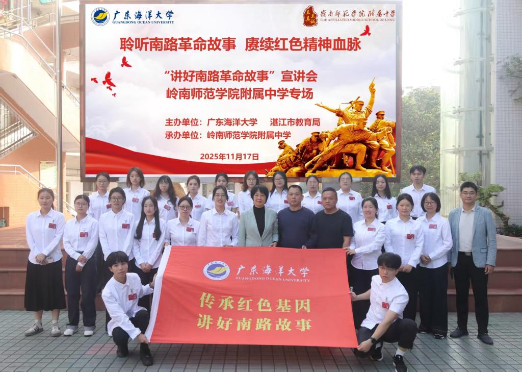宣讲现场气氛庄重而热烈。附中学生神情专注,认真聆听宣讲员讲述南路革命的光辉历程。作为广东人民革命和中国革命的重要组成部分,南路革命具有“时间早、地域广、环境复杂、斗争艰苦、影响深远”的特点。从粤西丘陵到北部湾畔,从钦廉边陲到琼崖海岛,革命火种曾在此燎原,英雄事迹至今传颂。
