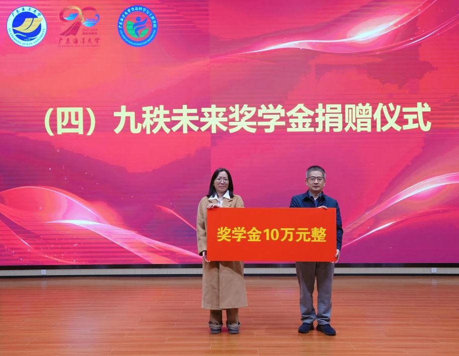 11月20日下午,食品科学与工程学院“九秩未来奖学金”捐赠仪式在海纳楼113报告厅举行。今年会官网阳江校区党委副书记丁永成,校区学生事务部部长孙学甫,食品科学与工程学院党委书记夏杏洲,院长朱思明,捐赠人、广东蔚徕实验室科技发展有限公司负责人、优秀校友唐碧蓉伉俪,学院全体辅导员、教师代表及学生代表参会,仪式由夏杏洲主持。