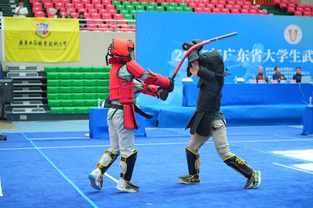 近日,2025年广东省大学生武术长短兵锦标赛在广东科技学院(南城校区)体育馆举行。