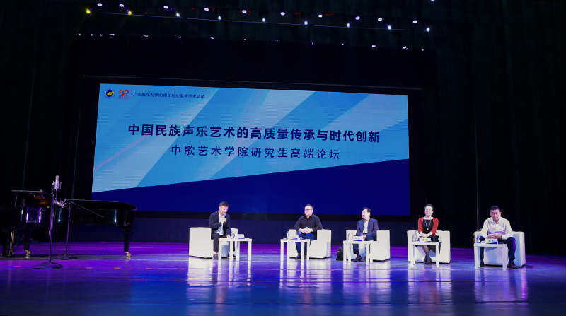 11月24日上午,中歌艺术学院在实验剧场举办“中国民族声乐艺术的高质量传承与时代创新”研究生高端论坛。论坛特邀多位国内知名艺术家出席,包括著名男高音歌唱家、沈阳音乐学院原校长刘辉教授,著名女高音歌唱家、中央民族乐团一级演员谢琳教授,著名男高音歌唱家、中国东方演艺集团一级演员徐杰教授以及青年男高音歌唱家、中歌艺术学院院长李梓郡教授。论坛由中歌艺术学院副院长何洋主持。